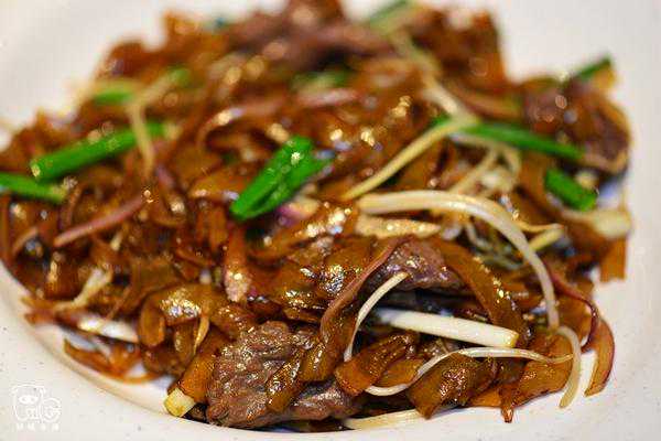 干炒牛河中的河是河粉,就是牛肉炒河粉,看似简单,人人会炒,不过却是很难掌握好的一款出品,师父功底如何,可见一斑;