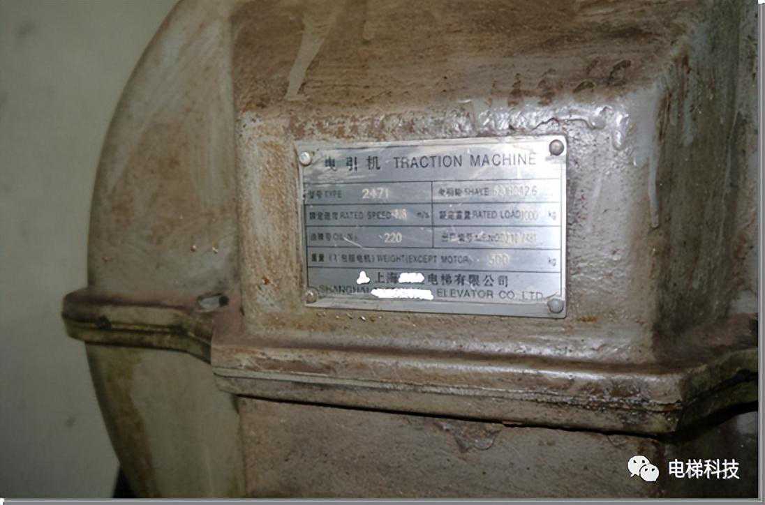 涉事电梯为曳引式乘客电梯,额定载重量:1000kg,额定速度:1.6m/s,曳引轮直径:620mm,配套6条复合型绳槽,配套使用直径12mm的曳引钢丝绳,电梯主机型号为2471(见图1),制造厂家为上海某电梯有限公司,制造日期:2002年10月。