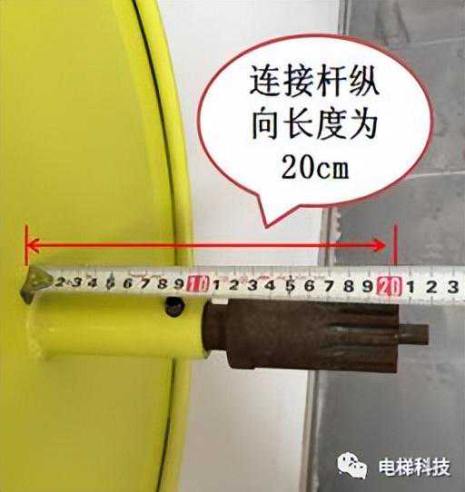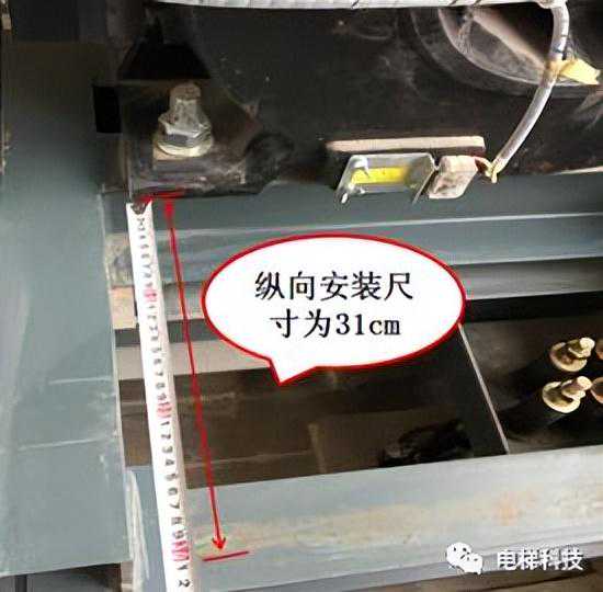 再测量纵向尺寸,曳引机基座纵向有31cm(见图4),盘车手轮连接杆纵向只有20cm,因此也无法延伸至基座外进行安装操作(见图5)。