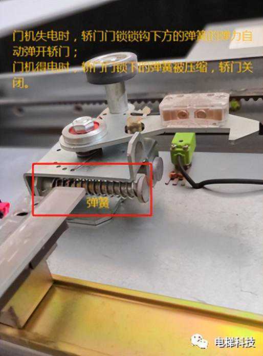 2019年9月,中山市特种设备检测院在对中山市某医院一台电梯进行定期检验时,发现3、4层的层门不能完全关闭,层门锁前端电气开关顶住挂钩(见图1),存在安全隐患,该电梯额定载重量:1000kg,额定速度1.0m/s,层站:8层8站,2010年1月投入使用。