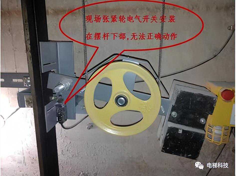 案例十三:电梯限速器的张紧轮电气开关安装错误案例