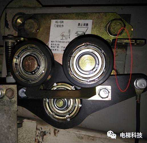 顺德特种设备检测院在对辖区内一台曳引驱动乘客电梯进行定期检验时,发现该电梯的二楼左侧层门的导向滑块完全缺失(见图1),不符合《电梯监督检验和定期检验规则——曳引与强制驱动电梯》(TSGT7001-2009)中6.6项“层门和轿门正常运行时不得出现脱轨、机械卡阻或者在行程终端时错位”的要求。