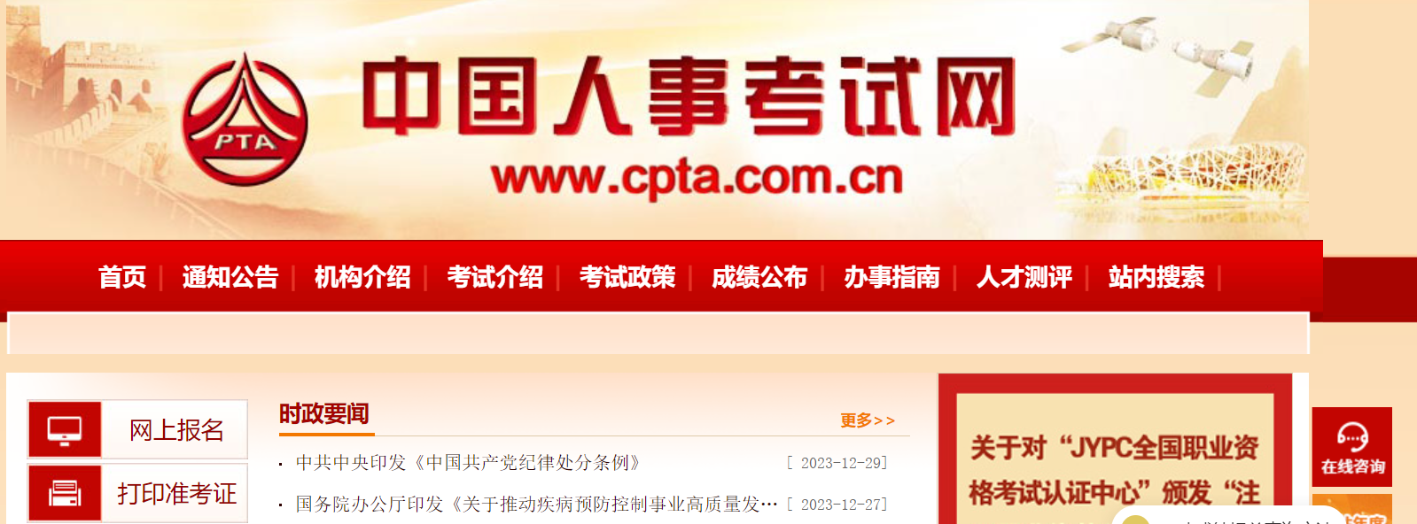 这是国家人社部人事考试中心的官网,其职能是承担全国统一组织的有关专业技术人员资格考试相关工作,协助完成公务员和事业单位公开招聘考试的服务工作。