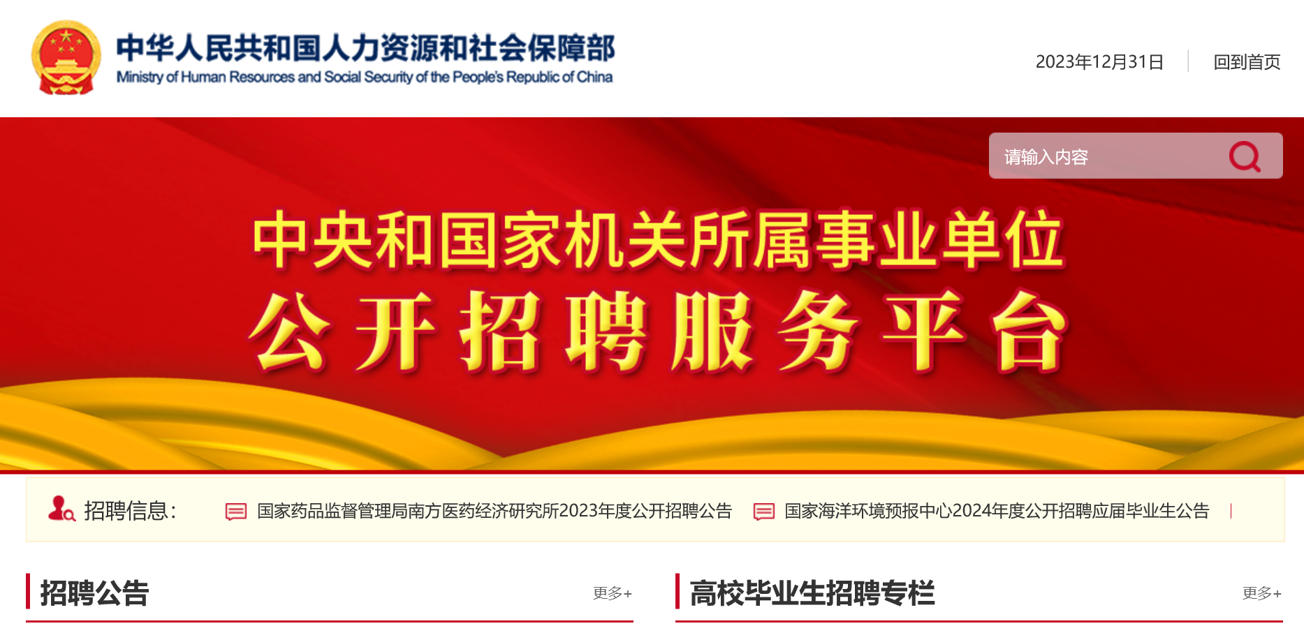 中央和国家机关所属事业单位公开招聘服务平台官网截图