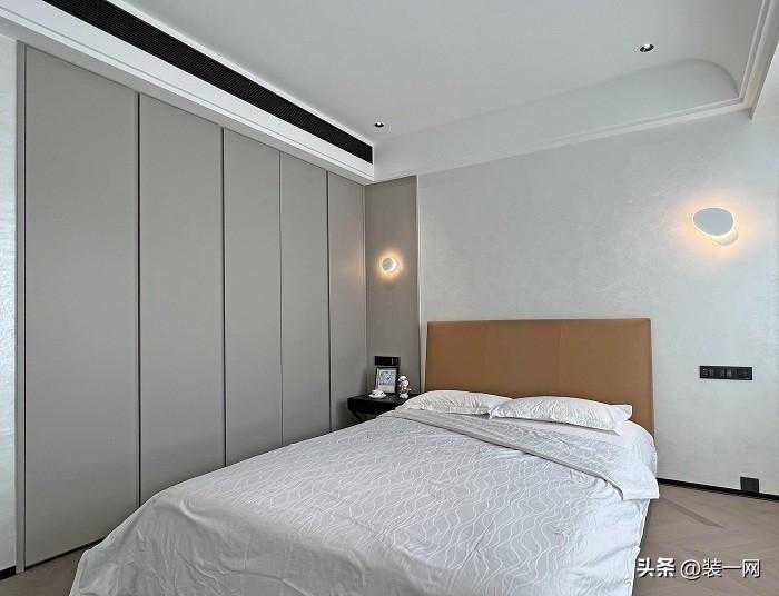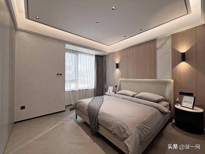 主卧床头质朴的木色和白色大理石纹构成了最纯粹的背景,简单的色彩,少量的物品让人走进卧室不受过多信息的干扰,细腻柔软的床品与品质寝具让睡眠来的更为自然和放松