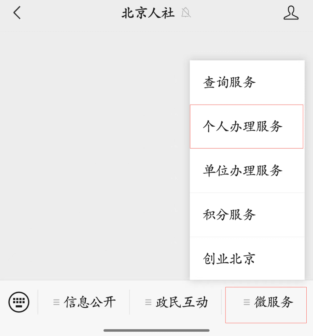 以【北京人社】微信公众号为例,操作流程如下:
