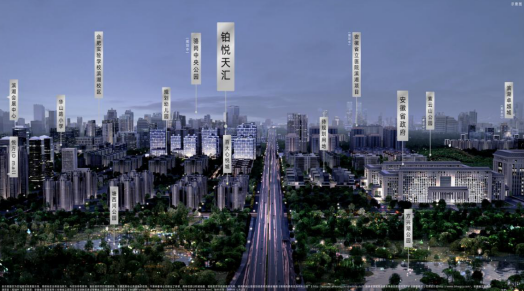 旭辉全国第15座铂悦,先见滨湖价值高地,卓立滨湖省府西资源区,铂悦天汇北倚骆岗中央公园(规划中),东临卓越城文化产业高地(规划中),与行政、商业多方影响力资源相接,毗邻办公,聚焦城市视野。