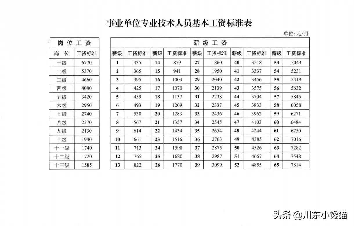 目前事业单位(教师类除外)专业技术岗位执行的岗位等级工资和薪级工资是2021年10月份调整过后的标准,鉴于到目前为止事业单位基本工资也没有新的调整消息,也就是说2021年调整后的标准也算是最新的标准了,等级工资与薪级工资构成专技岗的基本工资、基本工资全国所有事业单位(教师类除外)标准都是一样的。