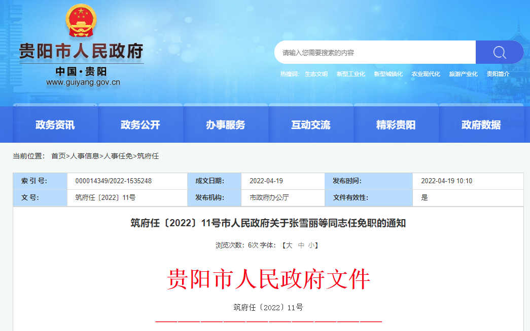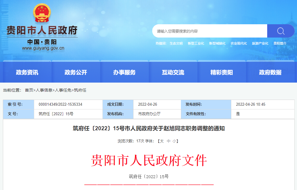 近日,贵阳市人民政府网最新公开了四则人事信息,主要内容如下: