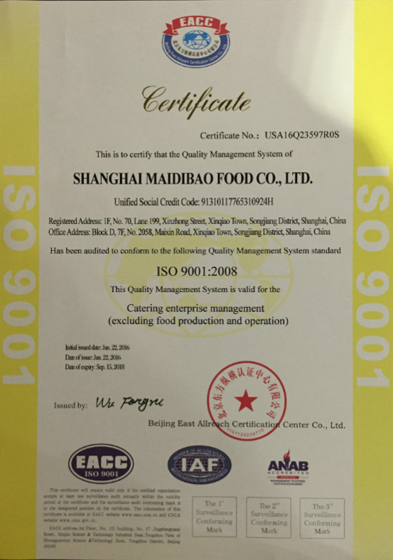 2016年3月份以来,在公司全体员工的共同努力下,经过北京东方纵横质量体系认证中心专家组的全面、严格、细致的指导和审核,确认我公司符合ISO9001:国际管理体系标准要求,于2016年6月22日向我公司正式颁发ISO9001国际管理体系证书。漫长的等待终于通过国际认证,标志着麦迪堡管理体系更加完善更国际化,上升到一个新的台阶,为我们的长远发展奠定坚实基础.麦迪堡历经10余载的努力率终于得到权威部门的认可.