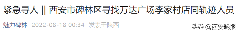 据西安市碑林区疫情防控指挥部消息,8月12日14:00至17日17:00,有确诊病例在碑林区万达广场李家村店,特别是广场三楼风火轮儿童运动成长中心和儿童游乐场逗留,并多次进出此区域。