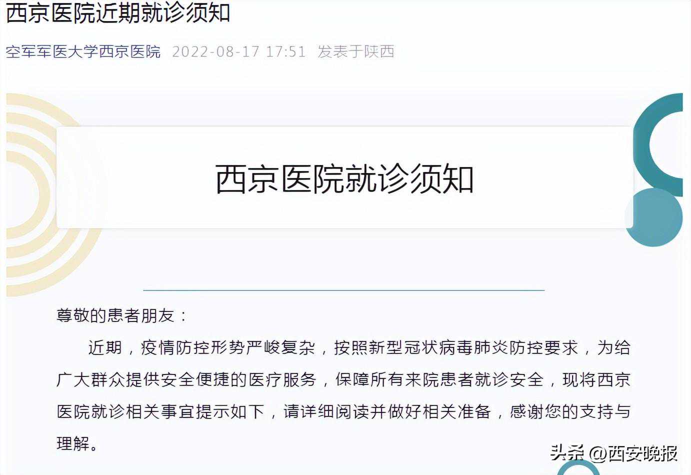 西京医院近期就诊须知