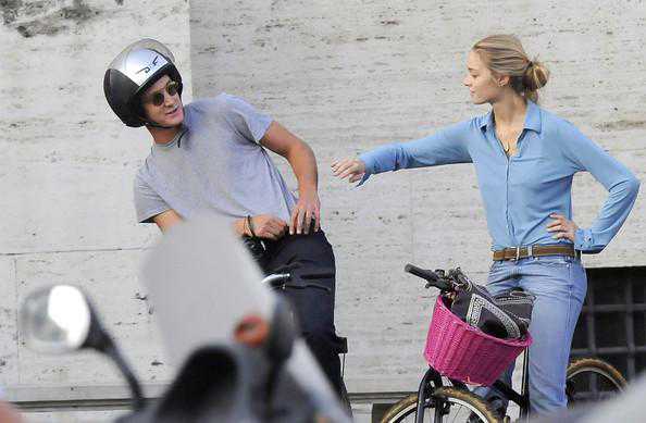 和丈夫Pierre一起骑单车出游,也要穿上自己最爱的牛仔裤,搭配同色系的雪纺上衣,既苗条纤细,又有清爽的女人味。Beatrice还娇羞地追打自己的丈夫,看来感情不是一般的好啊。