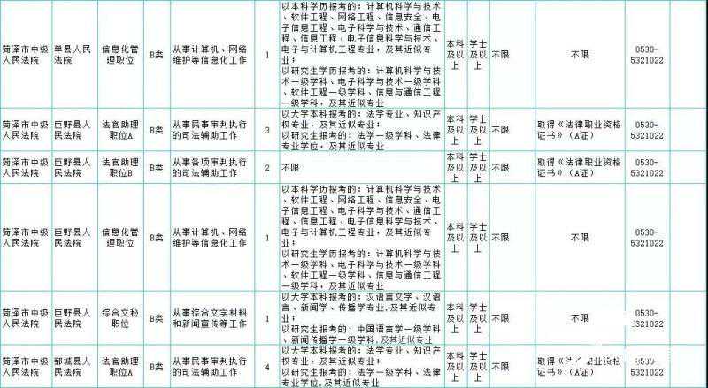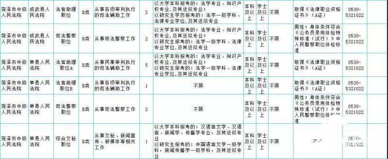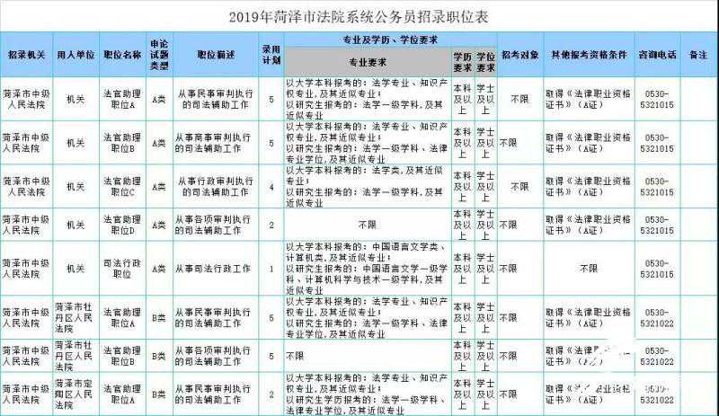 附:2019年菏泽市法院系统公务员招录职位表