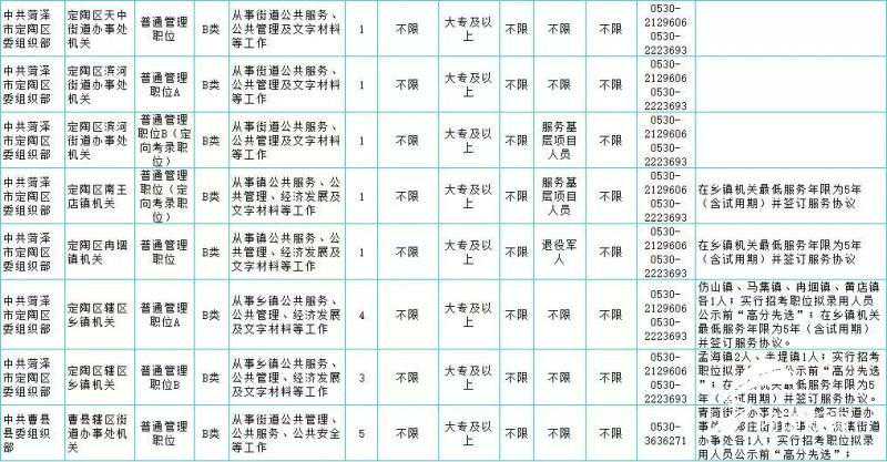 附:2019年菏泽市公务员招录职位表