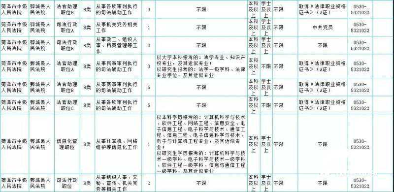菏泽市中级人民法院(用人单位各县区人民法院):