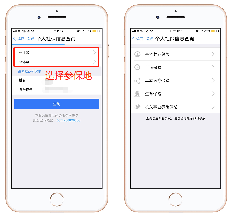 选择参保地,即可查询个人信息。