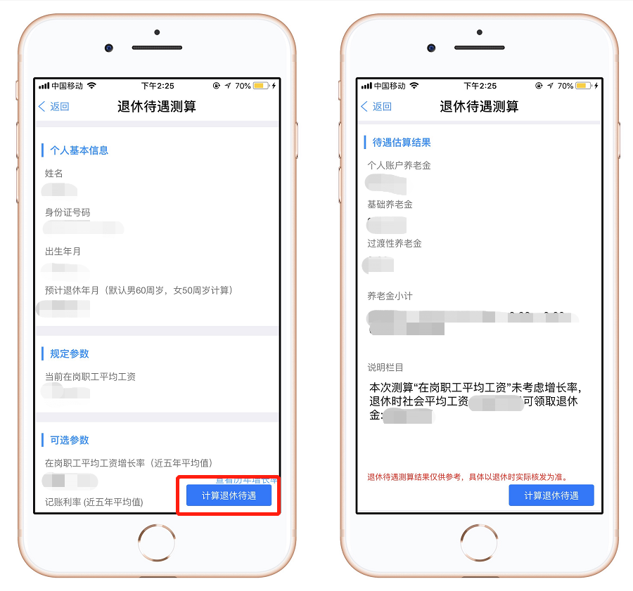 退休待遇测算