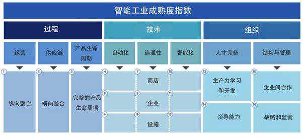 TUV南德开发的工业4.0成熟度指数由三个层面组成:顶层是企业向“工业4.0”转型升级涉及的三个重要组成部分:过程、技术和组织。在中间层,运营、供应链、产品生命周期、自动化、流通性、智能化、人才完备、结构与管理共八个重要指标支撑着这三大部分,八个指标再映射到纵向整合、横向整合、完整的产品生命周期等16个评估维度上,代表组织必须考量的关键项目。工业4.0成熟度指数让企业深入了解数字化的发展进度、启动领域,以及需要抓住哪些机会、遵循哪些途径来实现当今物理世界向未来数字化世界的高度影响力转型。利用该指数,企业可全面评估现有流程、系统和结构,进而制订转型战略和执行蓝图。