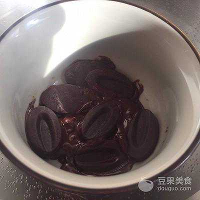 12、把甜甜圈一个一个的放进融化好的巧克力沾一下,然后放晾网上