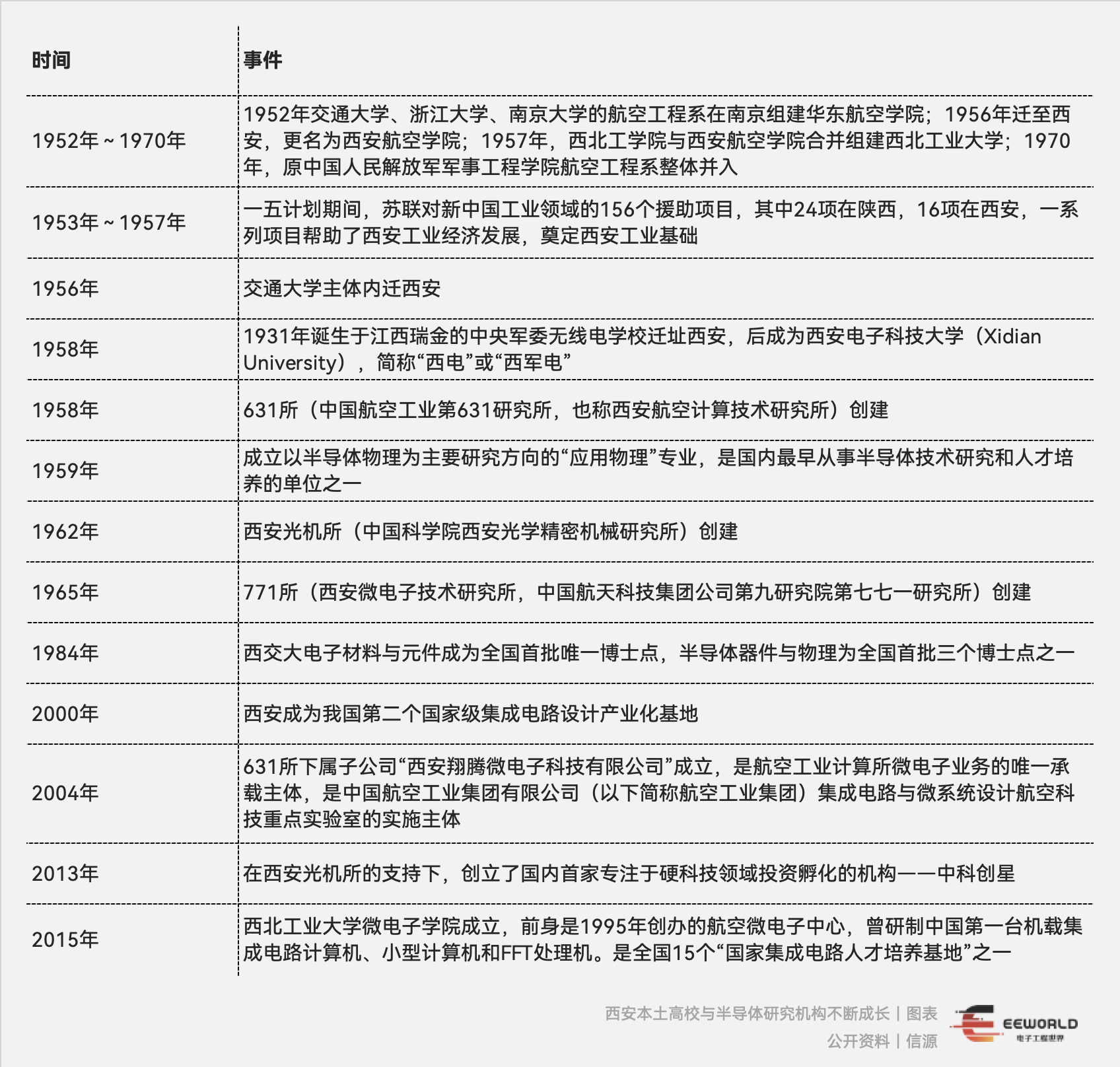 自1967年以来,西安一直是中国半导体科研、试制和教育重镇之一,新中国第一块集成电路便出自西安771所(西安微电子技术研究所)。