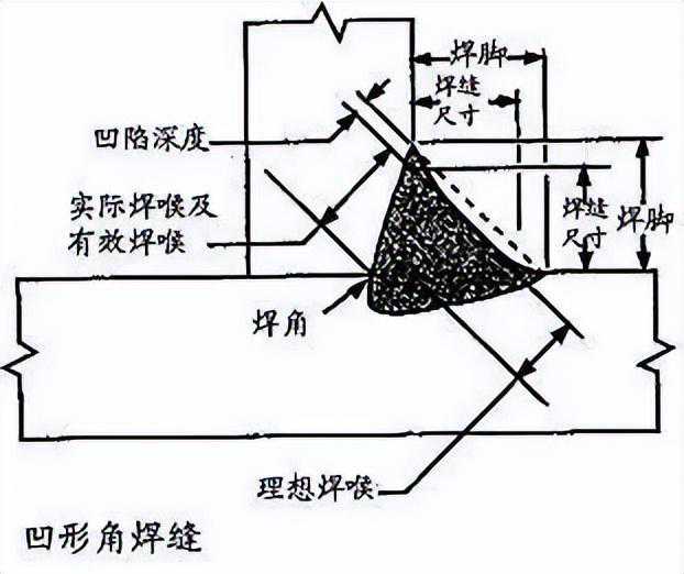 因此,凸形角焊缝,焊脚等于焊缝尺寸,但凹型角焊缝焊缝尺寸稍小于其焊脚长度。