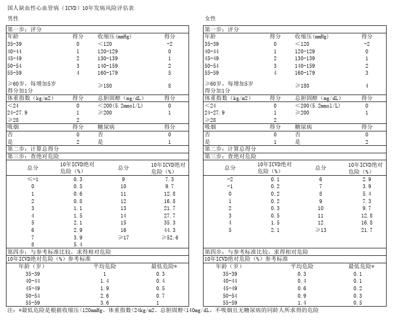 第四步:根据年龄分组,查相同年龄10年CVD平均危险为3.6%,最低危险为1%。