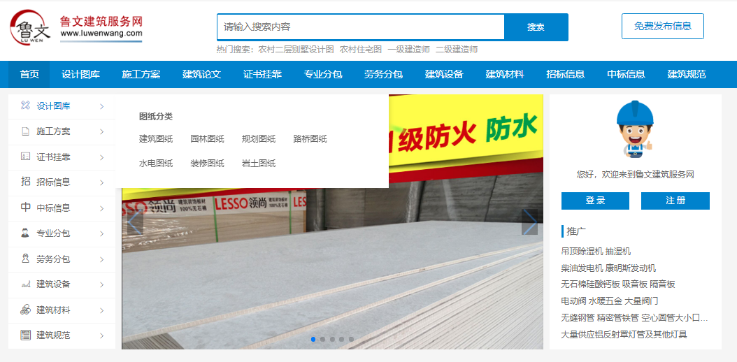 鲁文建筑服务网,这是一个很多设计师都非常青睐的网站,这里有设计图库、施工方案、建筑论文等多种资源,其中的图纸资源,就有好几种分类,比如建筑图纸、园林图纸、规划图纸、路桥图纸、水电图纸、装修图纸、岩土图纸等等。