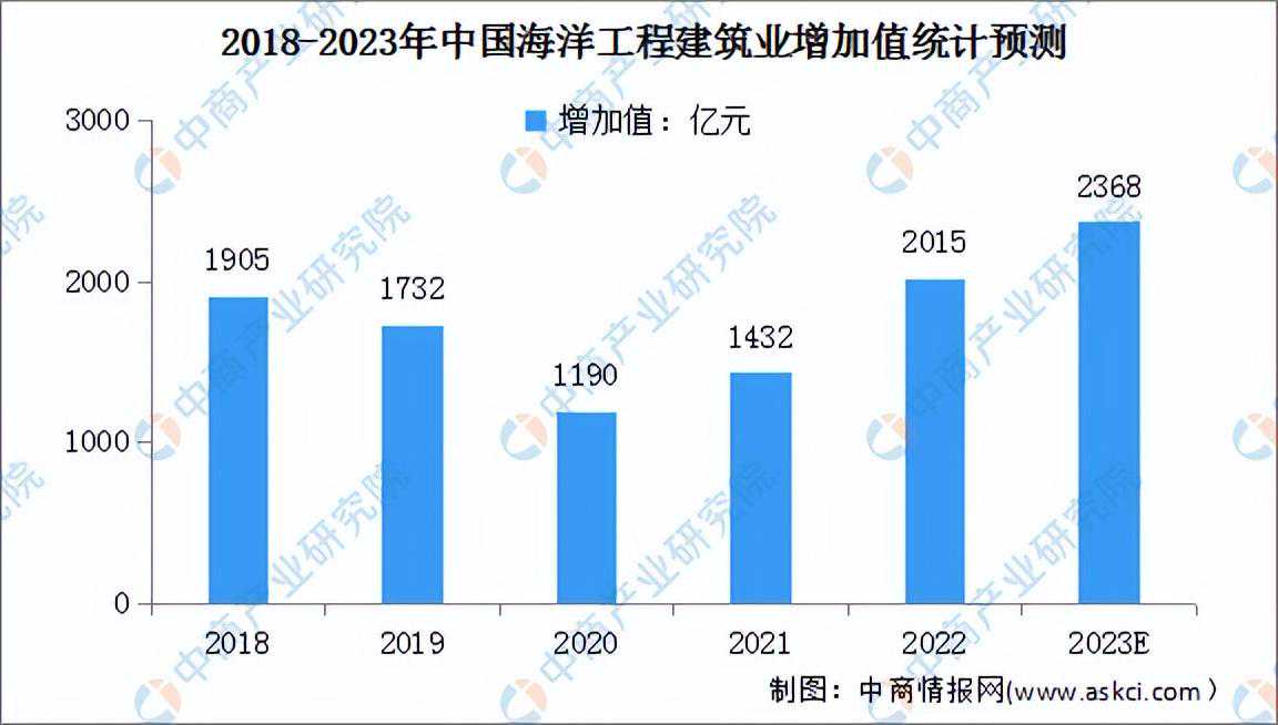 数据显示,2022年海洋工程建筑业全年实现增加值2015亿元,比上年增长5.6%。海洋工程建筑业保持稳定增长,跨海桥梁、海底隧道、沿海港口、海上油气等多项重大工程有序推进。中商产业研究院预测,2023年我国海洋工程建筑业增加值将达2368亿元。