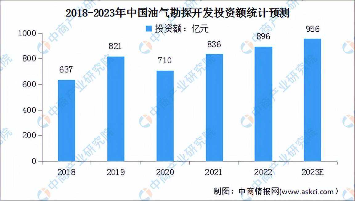 近年来,中国油气行业积极参与上游油气资源开发,以高效勘探作为首要任务,不断增加油气勘探开发资本支出,为满足中国油气需求增长提供有力支撑。2022年中国油气勘探开发投资额为896亿元。未来,随着中国油气需求的进一步提升以及国家对能源安全的高度重视,预计中国石油及天然气勘探开发投入将进一步提升。预计2023年中国油气勘探开发投资额将达956亿元。