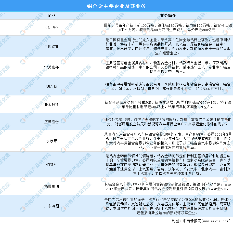 目前,我国铝合金行业市场竞争激烈,生产企业主要以中小型企业为主,行业集中度相对较低。在铝合金生产领域,主要有中国铝业、云铝股份等企业,兼备铝矿开采和铝合金产品生产与销售;在铝合金等有色金属复合材料领域,主要有铂力特、宁波富邦等企业,主营铝合金及铝型材生产制造;在铝压铸领域,主要有亚太科技、应流股份、永茂泰、广东宏图等企业,生产高端铝合金铸件。