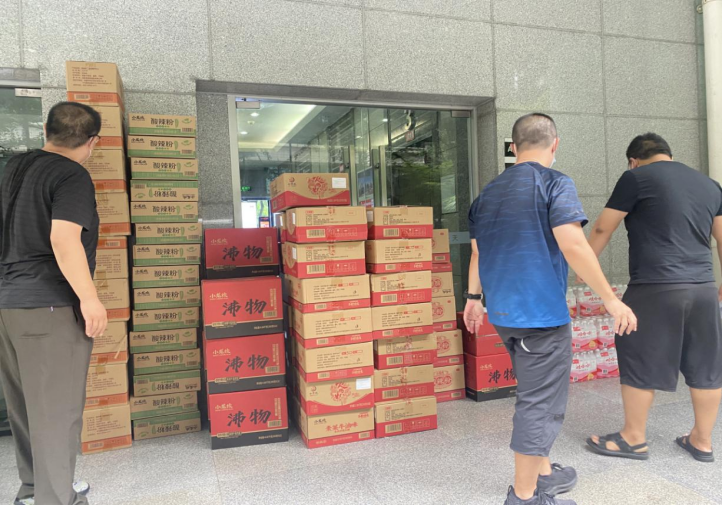 成都美食文化交流与创新中心为“大白”和一线工作人员送上热饭热菜和饮用水、冰块等防暑降温用品。
