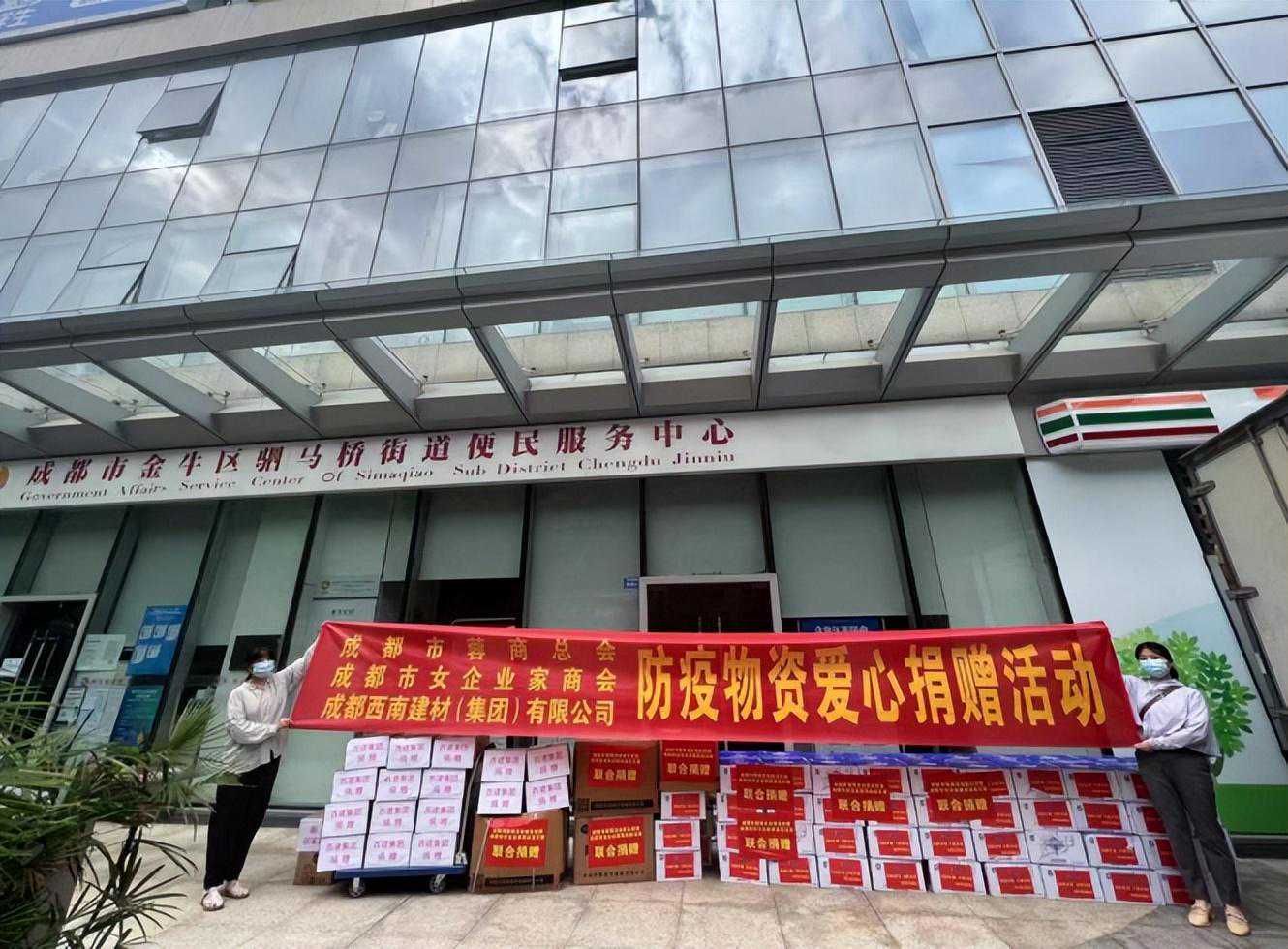 成都市蓉商总会联合成都市女企业家商会、成都西南建材(集团)有限公司向抗疫一线工作人员捐赠20万元物资。