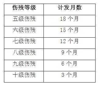 一次性工伤医疗补助金计发标准=计发月数×上年度本市城镇单位就业人员月平均工资,计发月数如下: