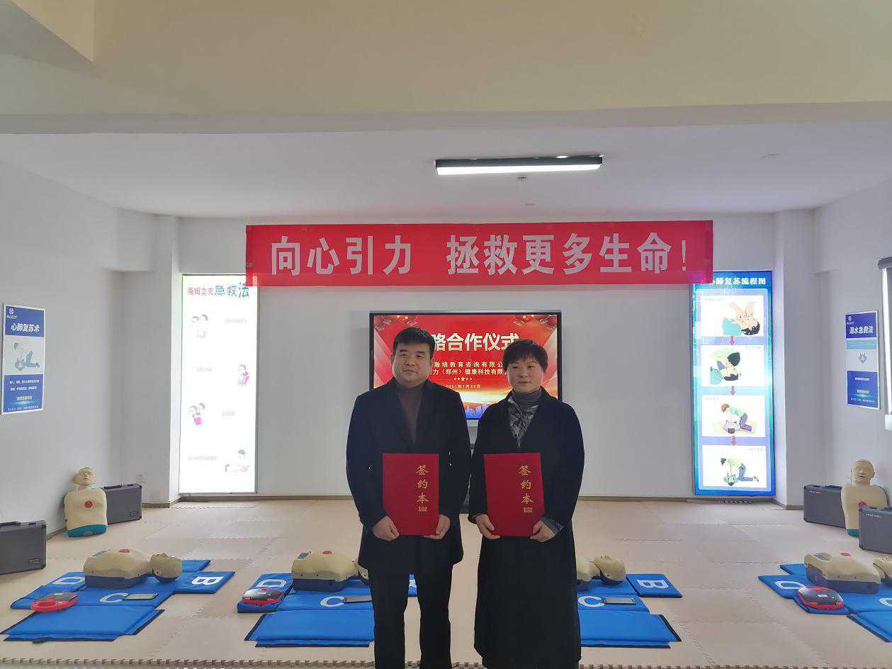 2021年1月30日上午,河南瀚培教育咨询有限公司总经理张树娟带着公司骨干团队莅临向心引力(郑州)健康科技有限公司就院前急救知识普及和急救技能培训项目进行实地考察并达成战略合作。今后将发挥双方的资源优势,强强联合,深度合作,携手并进,致力于急救事业的发展!