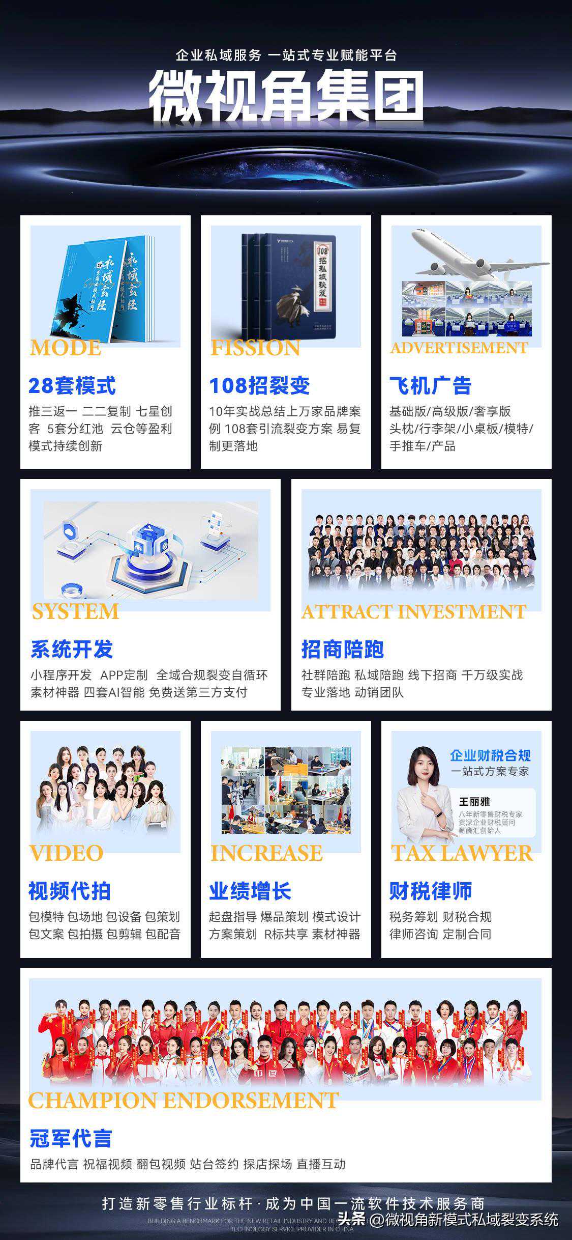 3.垂直新零售,专注合规分销裂变。28套盈利商业模式设计,且持续升级迭代。16大落地系统配套60套成功案例,108招私域裂变秘笈。