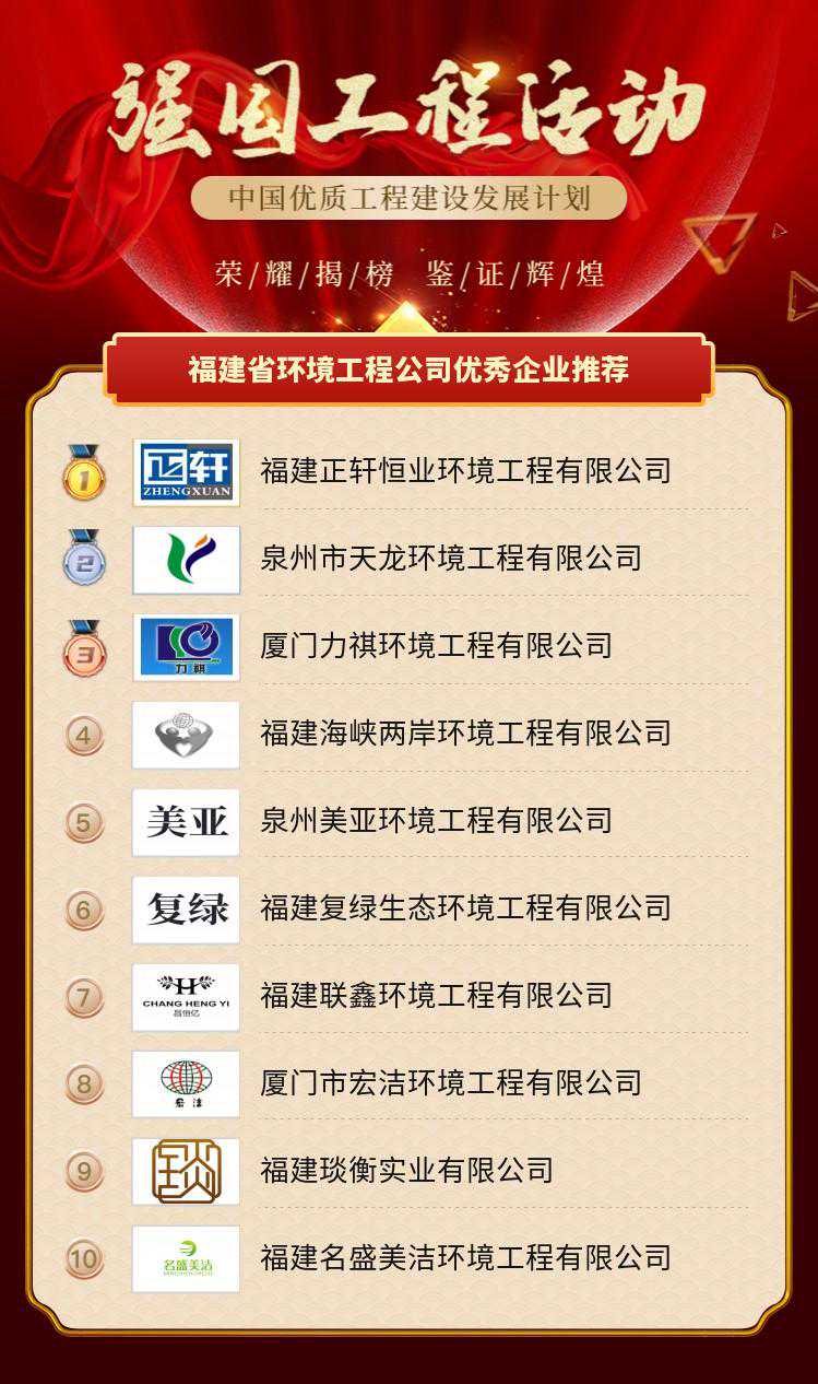 中国优质工程建设发展计划—强国工程,福建省环境工程公司优秀企业推荐排名结果如下: