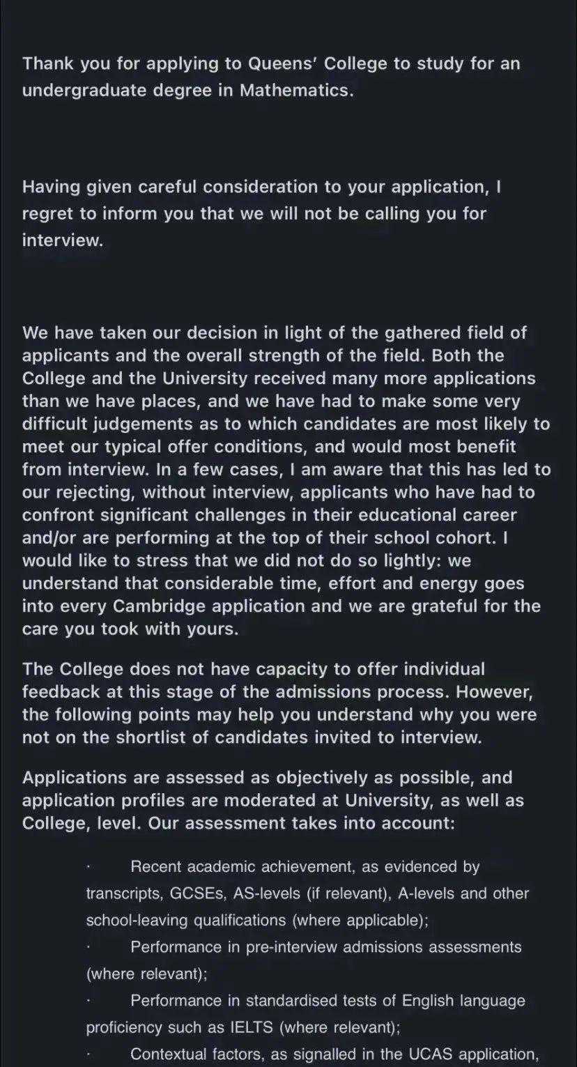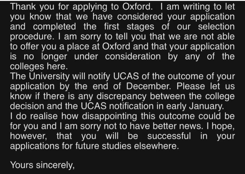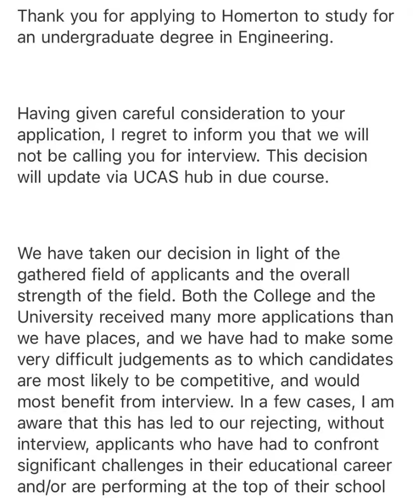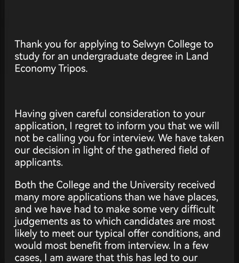 今年剑桥11月上旬就开始零星发拒信了,截止到目前牛剑都发了哪些拒信,搜罗全网给大家找到了一些: