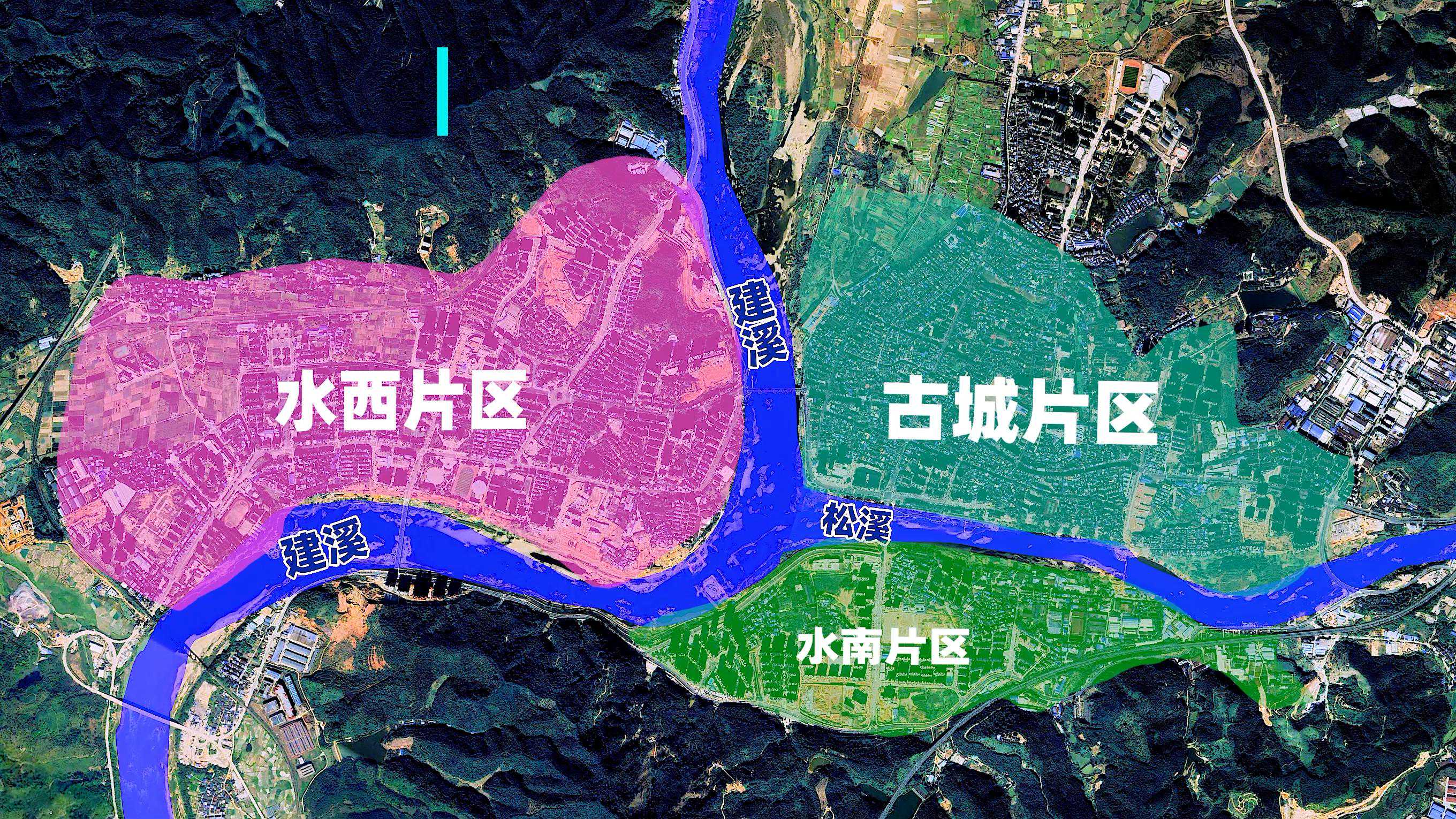其实建瓯的可建设用地在南平“三治所”中应该是最大的,按理说应该有很大的发展潜力。它的主城区被建溪和松溪分成了三个部分,分别为古城片区、水西片区和水南片区。