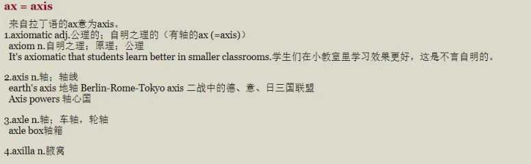 -ax的词缀我找了很多资料,说法不一,比较靠谱的就是来自拉丁语axis: