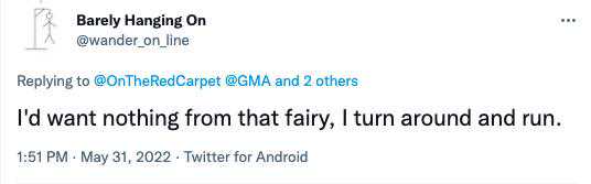 “我不想从那个仙女那里得到任何东西,我转身就跑。”
