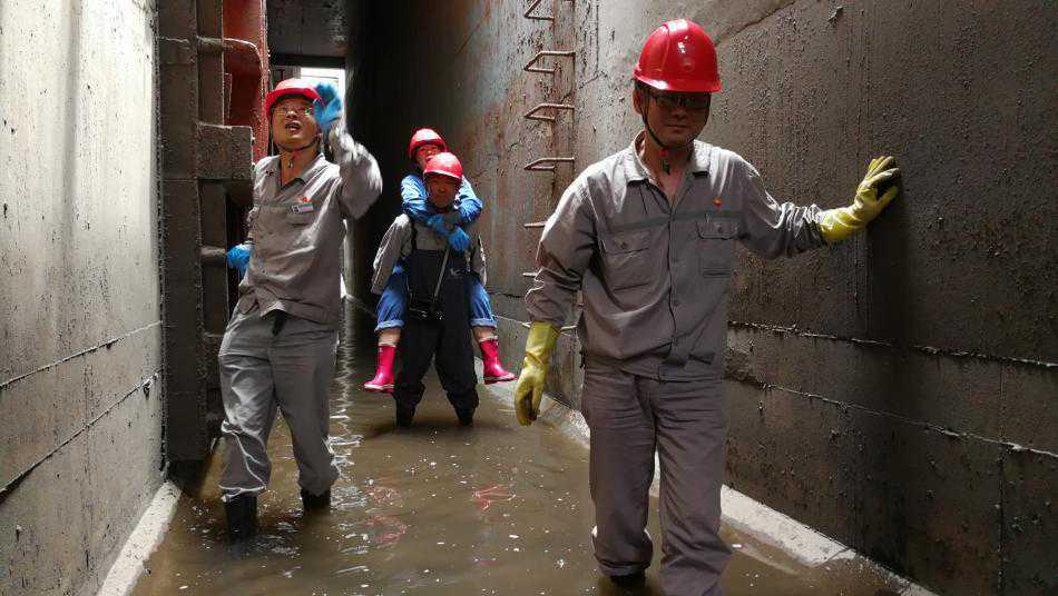 他们一同深入地下7.2米的吸水池底进行地毯式查看,吸水池内的所有静设备及土建施工情况如何。池底的循环水很深,快要漫过大家的雨靴。