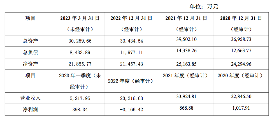 其业绩在2019年还是营收22392.02万元,净利润1127.35万元;但到2022年,该公司的业绩就变为营收23216.63万元,净亏损3166.42万元。
