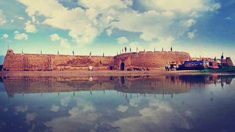镇堡昔年圈养羊,倒塌沙漠甚荒凉。