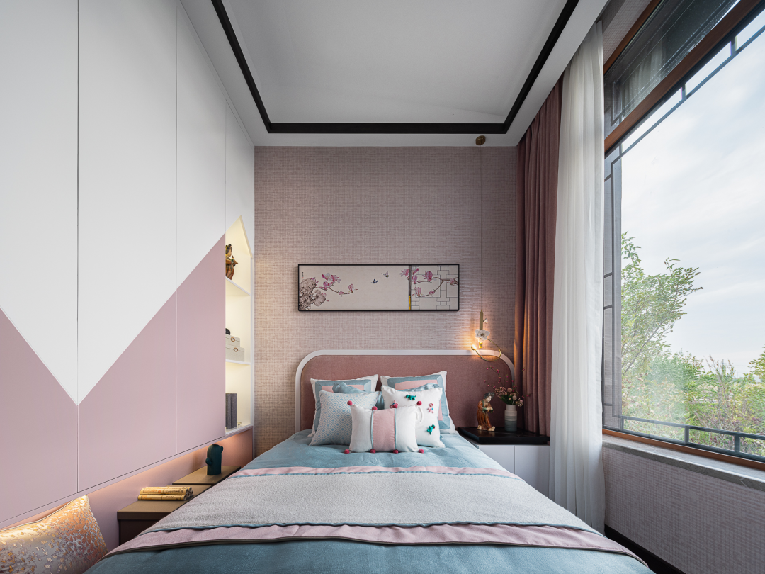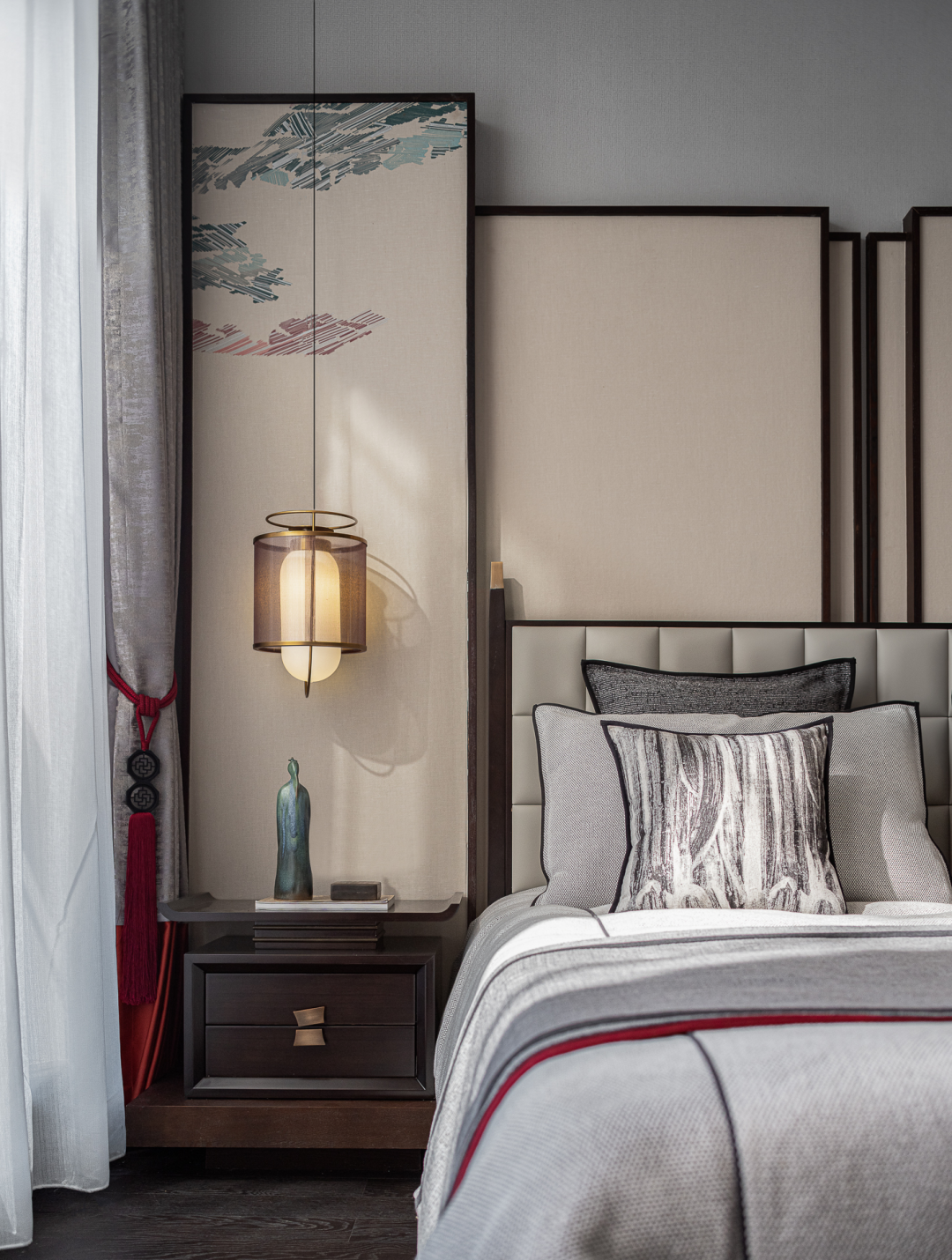 将唐代意美与人文内涵兼收糅合,以素雅简净的居住格调舒缓疲惫于都市节奏的身心,素锦亚麻、花艺瓷器等东方饰物共同抒写诗意风华,空间别有一番清雅艺韵。生活于此,无过多尘杂琐事,心静且轻,安逸闲适。