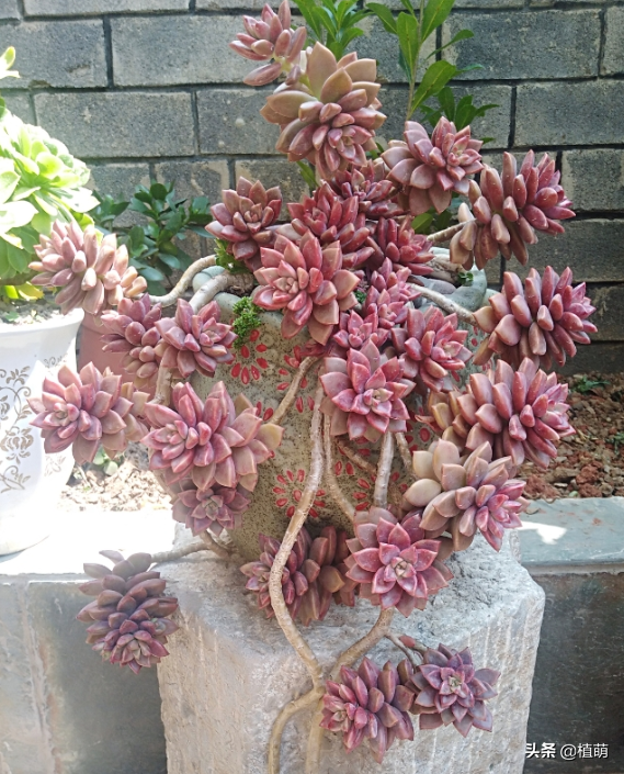 当多肉受光时间更长,均匀,自然会变得更加艳丽。要知道,多肉能不能上色出状态,光照是否充足是非常关键的要素。而姬胧月放在室外露养,就不用担心缺少光照,因为露台四面都空旷旷的,光照充沛,且通风。