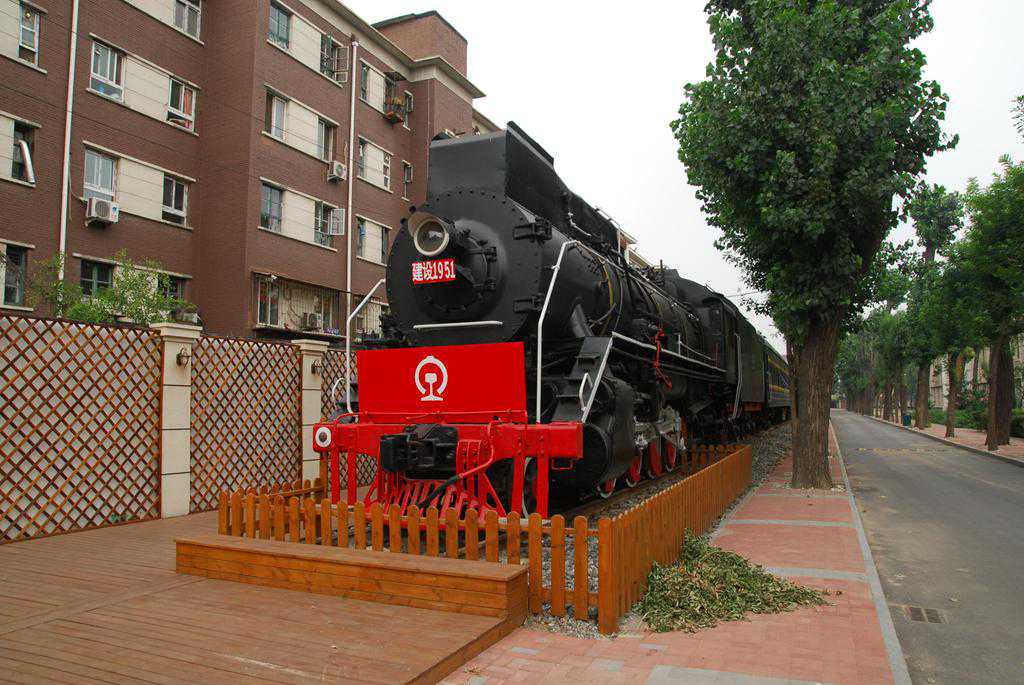 最后带大家看看津铁院的铁路文化公园吧!,这个公园摆放了一辆建设型蒸汽机车+22型客车+敞车+罐车+平板车