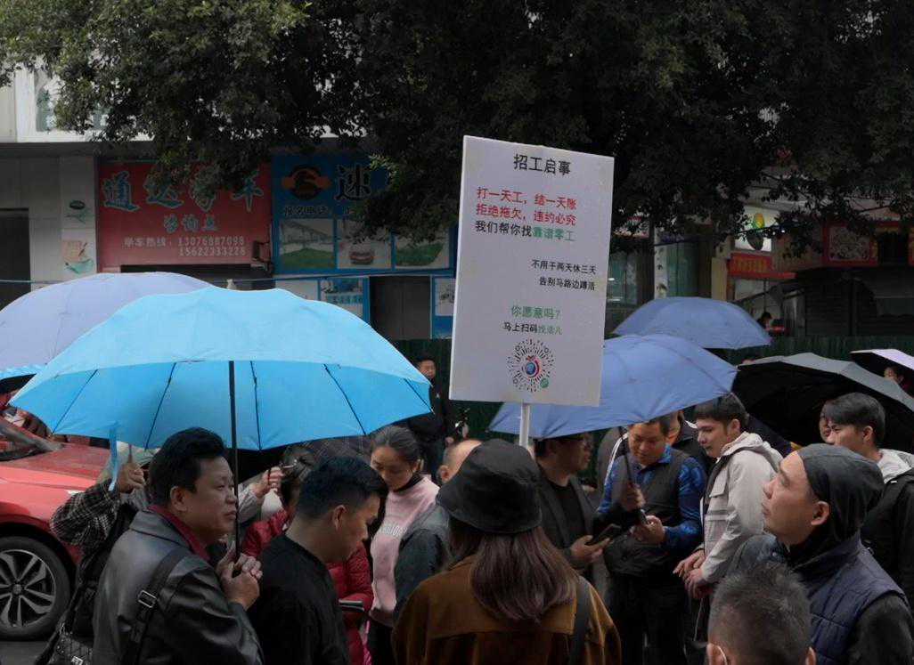 在花都区狮岭镇南航大道南与合成市场五街路口,不仅是传统的日结工聚集地,同时也是零工市场的一个缩影。不少附近的工厂都会来到这里招聘零工,来满足经常变化的订单需求。如今随着信息化的进一步普及,“马路蹲活”“街边揽活”打零工方式,也正向“送人到岗”的“数字零工”模式悄然发生改变。