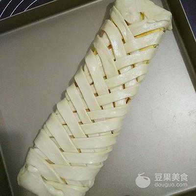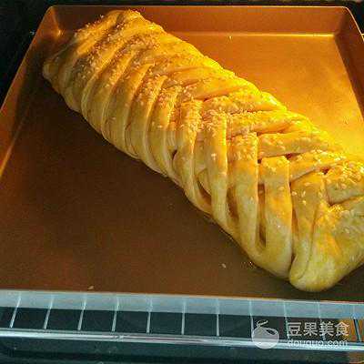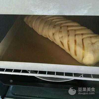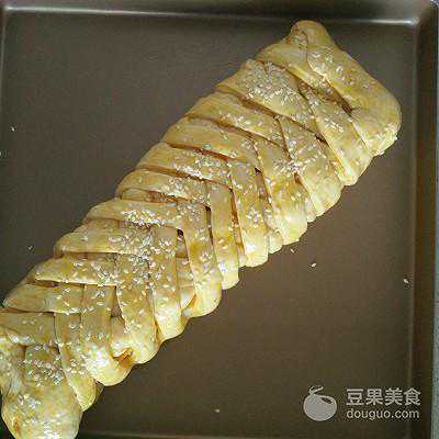 12、半小时过后拿出面团刷上蛋液,撒上些芝士粒装饰,就可以烤了