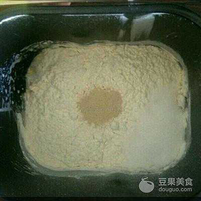 1、面包除黄油以外,依次倒入牛奶,鸡蛋,面粉,盐,糖,放对角,酵母中间和面25分钟